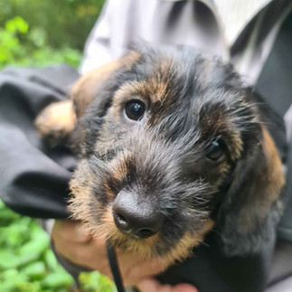 Ik kreeg via de updates in Whatsapp van een DSD-fokker foto’s door van een pup die een nieuw huisje zocht. Ik zag haar foto’s en was meteen verliefd. Manlief zou het goed vinden als we haar zouden reserveren, maar waar het hart meteen zei dat we haar zouden ophalen, kwam het hoofd in actie… In opvoeding en training gaat heel veel tijd zitten. En twee grote honden is soms al ‘een ding’, laat staan drie… Toen ik het de fokker liet weten, gaf hij aan dat zij inmiddels al een goed huis gevonden had. Ik had niet anders verwacht. En laten we eerlijk zijn, wie smelt nu niet bij die puppy-foto’s. Bij onze wandelingen kwam ik ook nog een ruwharige teckel tegen… 😍