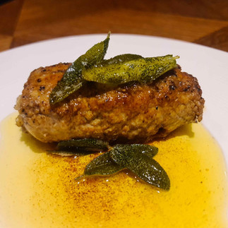 Voor nu heb ik een leuk receptje voor een voorgerecht; Bietencarpaccio met eendenborst en uiencompote. Ik hou sowieso van eend, en voor een gebakken eendenborst (de tamme eend dan, want die heeft een lekkere vetlaag die je krokant bakt) mag je mij altijd wakker maken! De uiencompote kun je van tevoren maken. De eendenborst in zijn eigen vet rosé bakken, de bietjes snijden en een beetje rucola aanmaken met een makkelijke dressing van olie, balsamico en wat zout en peper. Dat is echt snel gedaan, en je hebt een prachtig, feestelijk bord voor het Kerstdiner. Als hoofdgerecht heb ik een mooi stukje kalfsvlees; Saltimbocca. Van tevoren goed voor te bereiden, en binnen een paar minuutjes gebakken. Serveer het met een groene salade en een Aardappelgratin (die kun je ook van tevoren voorbereiden en hoef je dan alleen nog maar in de oven te schuiven). Ik heb er een Salie-boter bij geserveerd.
