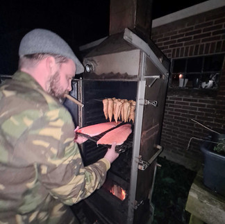 11 dagen hebben we het zonder zon moeten doen. Maar eindelijk, vrijdag brak het wolkendek en zag de wereld er meteen anders uit. Dan is het echt genieten. Het was een waar kokkerelweekje. Daar moeten natuurlijk de boodschappen voor gedaan worden, de foto’s gemaakt en … geconsumeerd of weggegeven worden. Die laatste twee dingen zijn het leukst! Ik word er altijd blij van een ander blij te maken met wat ik in de keuken gemaakt heb. Als anderen dan aan mij gedacht hebben door iets te maken met mij in gedachten, daar krijg ik een nog warmer gevoel van. Bij het Friese Visfestijn gisteren, een jaarlijks terugkomend feestje, werden de gasten weer getrakteerd op gebakken kabeljauw, gebakken tong, warm gerookte zalm en gerookte kipfilets. Henk en Johan maken er altijd één groot feest van, de feestverlichting is opgehangen en de koelkasten zijn gevuld. Waar wij de afgelopen twee jaar noodgedwongen in de garage moesten schuilen voor de regen en de harde wind, was het gisteren droog en brandde de buitenkachel (op z’n Henk en Johan’s 😉). Harm zorgde ervoor dat de zalmzijdes en de kip heerlijk gerookt werden, zodat we daarvan konden genieten, terwijl Albert Jan de hele avond bij de frituurpan stond om iedereen de hele avond door van gebakken visjes te voorzien.