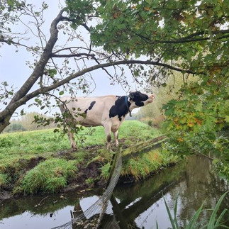 En dan nog deze mooie, maar beetje magere koe. Het is een jong beestje. Ze staat alleen in een weiland en is luid aan het roepen naar haar soortgenoten een paar weilanden verderop. Die geven geen gehoor aan haar geloei.