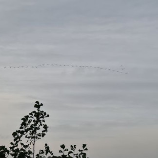 Eendjes die in de slootjes aan het poedelen zijn, kolganzen die overvliegen in V-formatie. Grauwe ganzen die altijd herrie maken bij het over vliegen of op het land. Bij die beestjes is het net altijd of ze ruzie aan het maken zijn of, als ze in hun eentje over vliegen, maar een beetje ‘gillen’ en luisteren waar er een antwoord vandaan komt.
