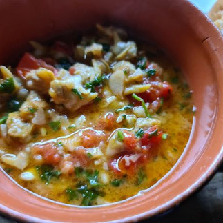 Vandaag heb ik mijn versie van een Castiliaanse soep gemaakt. Het eindresultaat was erg lekker, een soort ‘snel-in-elkaar-flans-soep’. Maar niet wat ik voor ogen had. Met andere woorden, dat recept kan ik nog niet online zetten. Maar wat ik van de week als lunch heb gemaakt voor de Spaanse sfeer, kan gelukkig wel online: Kokkels als hapje. Ik had een keer met de Spaanse weken van de Lidl een blikje kokkels gekocht, en die kwamen nu mooi van pas. De overige ingrediënten had ik in de koelkast, kast en vriezer. En ook met dit gerechtje kun je weer creatief zijn. Als er weer Spaanse weken zijn bij de Lidl, weet ik we dat ik meer blikjes ga kopen! (En ook grote potten olijven, want daar wil ik ook nog eens iets mee rommelen.)