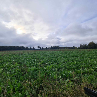 In de ochtend, na een fijn ontbijt, gaan wij richting de boerderij van de jachthouder. Onderweg zijn boeren al druk bezig op het veld, de aardappelen en de suikerbieten worden gerooid. Als wij aankomen, zijn de meeste gasten al gearriveerd. Op een Fries na woont de rest van de gasten redelijk in de buurt (voor Drentse begrippen š). Sommigen had ik al bijna een jaar niet gezien, dan is het extra leuk elkaar weer even een dikke knuffel te geven. We beginnen met koffie en uitleg welke percelen uitgedreven gaan worden en wat er geschoten mag worden.