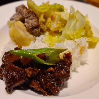 Vandaag heb ik een Indo-recept online gezet, mijn Babi Ketjap. Ik gebruik hiervoor hamlappen. Mijn moeder maakte dit altijd met speklappen. En hoewel ik van vet houd, vind ik flubberig en niet goed uitgebakken vet niet lekker. Wij eten hier vaak rijst bij, Sajoer Kool of Sambal Goreng Boontjes en vaak ook nog Frikadel Pan. De gerechten waar Je nu nog geen link aan kunt klikken, komen binnenkort online te staan. Bij veel Indo-recepten staat dat het voor 4 personen is, maar als je zoveel bijgerechten hebt, heb je voor 6-8 personen voldoende 😉. Niemand met honger de deur uit!