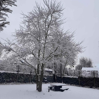 De gevulde koeken hebben een tweede dag niet overleefd. Omdat ik Amandelspijs had gemaakt, die voor twee batches gevulde koeken is, komt er komende week nog een ronde gevulde koeken of een Gevulde speculaas aan bod. Ook lekker voor bij de warme chocolademelk of thee na een mooie wandeling met de honden. En mooi was het! Helemaal als de zon zich soms even liet zien. Na het wandelen moesten de honden wel even ‘ontdooien’ in de doos bij de voordeur, want de sneeuwballen hingen aan de poten en buik.