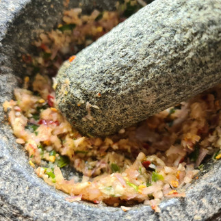 Ik heb van de week mijn Thaise gele currypasta gemaakt. Ik zou vrijdag alleen thuis zijn, en had een vriendin uitgenodigd te komen eten. We hadden al veel eerder willen afspreken voor een borrel, maar doordat ik nog niet fit was, hadden we dat steeds uitgesteld. Ik had de Kieuw krob en de Thaise viskoekjes als hapje vooraf. Daarna een Tomatensoepje, en als hoofdgerecht Thaise gele curry met kip, de Thaise komkommersalade met groene kruiden en wat witte rijst. Ik had geen puf meer om een dessert te maken, daarom had ik een triple chocolate kant en klaar gekocht, en dat was prima, want we hadden best veel gegeten. De Thaise gele currypasta kun je zelf maken, maar als je dat te veel werk vind, kun je die ook kant en klaar kopen en alsnog de Thaise gele curry met kip en groenten maken. Als je de pasta wel zelf maakt, heb je met dit recept meteen voldoende voor twee keer, ik vries de helft namelijk in.