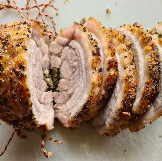 Vandaag heb ik een leuk recept voor je als er vrienden blijven eten. Goed van tevoren voor te bereiden en daarna laat je je oven het werk doen: Porchetta met salie, tijm, knoflook en pijnboompitten. Voor de foto heb ik dit gemaakt toen manlief en ik met z’n tweetjes waren, dus heb ik een kleiner stuk vlees gebruikt en helaas ook zonder zwoerd. Dat zwoerd geeft een mooie knapperige korst. Maar zonder is dit mooie stukje vlees ook echt heerlijk hoor, dus mocht je zelf ook een keer misgrijpen bij de slager, geen paniek. Straks hebben we weer een lang weekend, ik verheug me er nu al op. Mooi weekend alvast!!