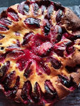 Ontpit de pruimen door deze door de helft te snijden en de pit eruit te halen. Snijd vervolgens de pruimen in kwarten. Verdeel de kwarten over de quiche-vorm.
