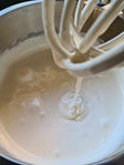 Doe de eieren in een ruime kom en klop deze, terwijl je beetje bij beetje de suiker en de vanillesuiker toevoegt, tot een mooie luchtige massa. Ik raad je aan een keukenmachine te gebruiken als je die hebt. Het mengsel moet minstens 4 keer in volume hebben toegenomen.