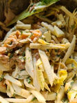 Doe hier de gerookte zalm, de Hollandse garnalen, de appelstukjes en de Kimchi mayonaise bij. Meng alles goed door elkaar.